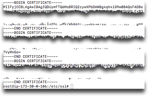 All 3 of these must appear in the crt file you are about to create. The crt file is known as a “chained certificate” which includes the content of all 3 certificates concatenated in a single file. The certificates each certify the level above it so you server certificate goes on top, validated by the Certificate Authority (CA) certificate, which is validated by a root certificate.