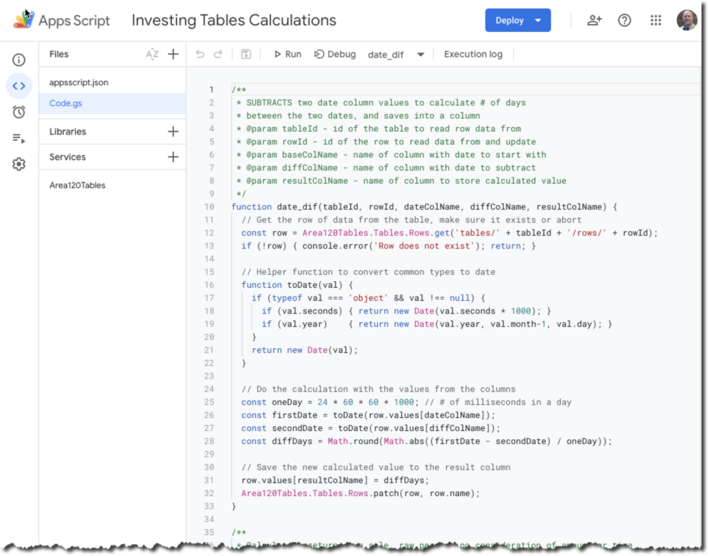 And here you can see how deep the Apps Script tech can go, including the ability to hook to just about any Google API library you’d need.