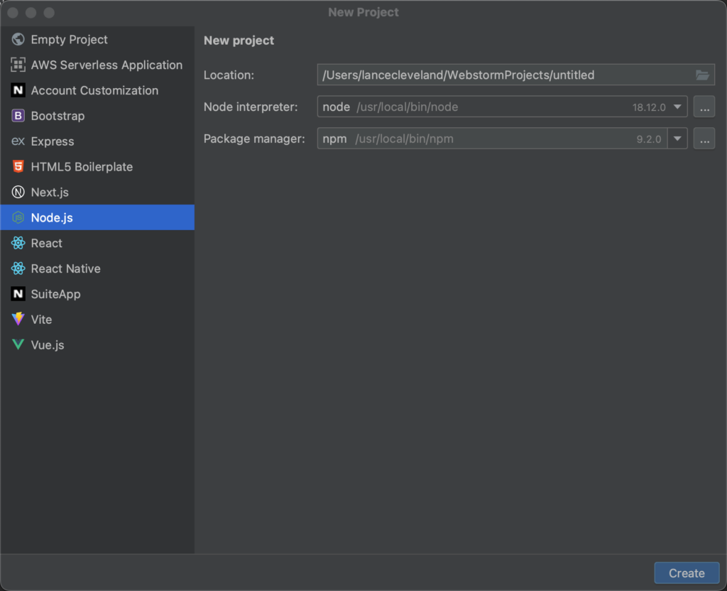 - Use the default path for node as the engine (18.2) and NPM (9.2).