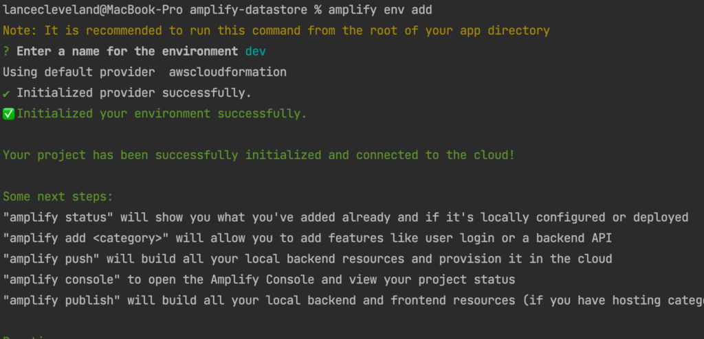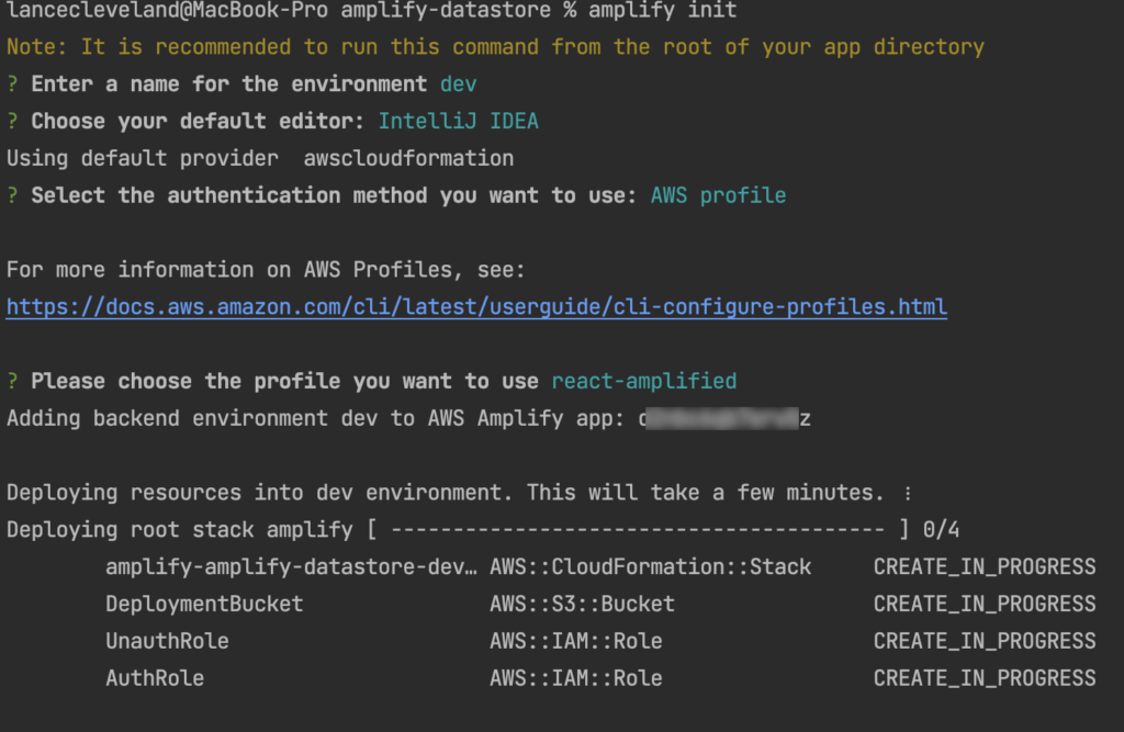 This will create a subfolder named amplify-datastore that will contain a react + amplify app.