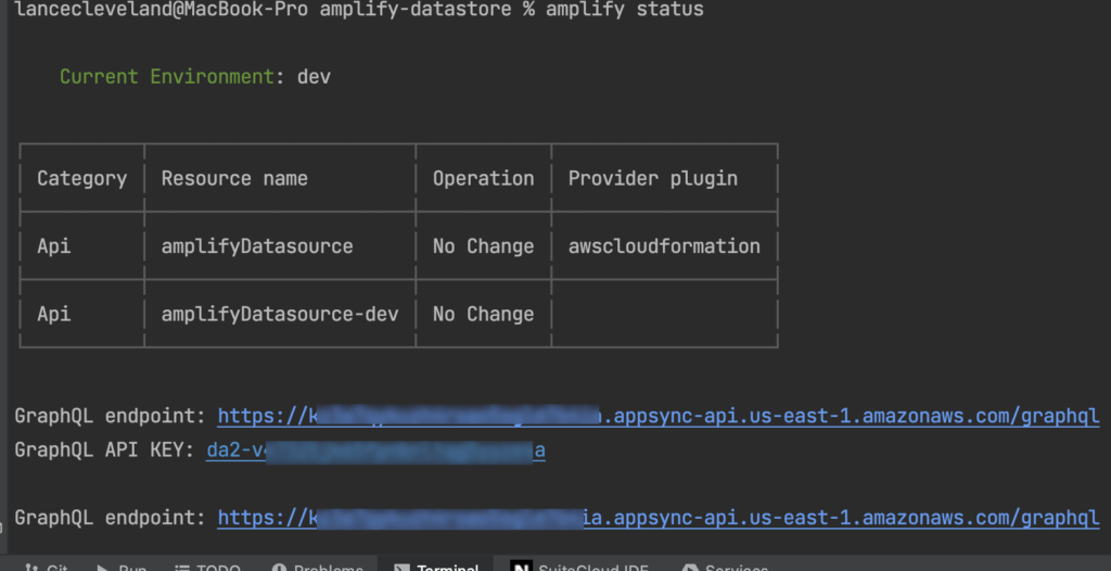 User: arn:aws:iam::744590032041:user/amplify-react-amplified is not authorized to perform: appsync:GetGraphqlApi on resource: arn:aws:appsync:us-east-1:744590032041:apis/7ed66z6fkfhallyiwzwctbcryy