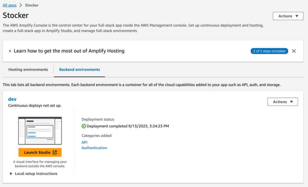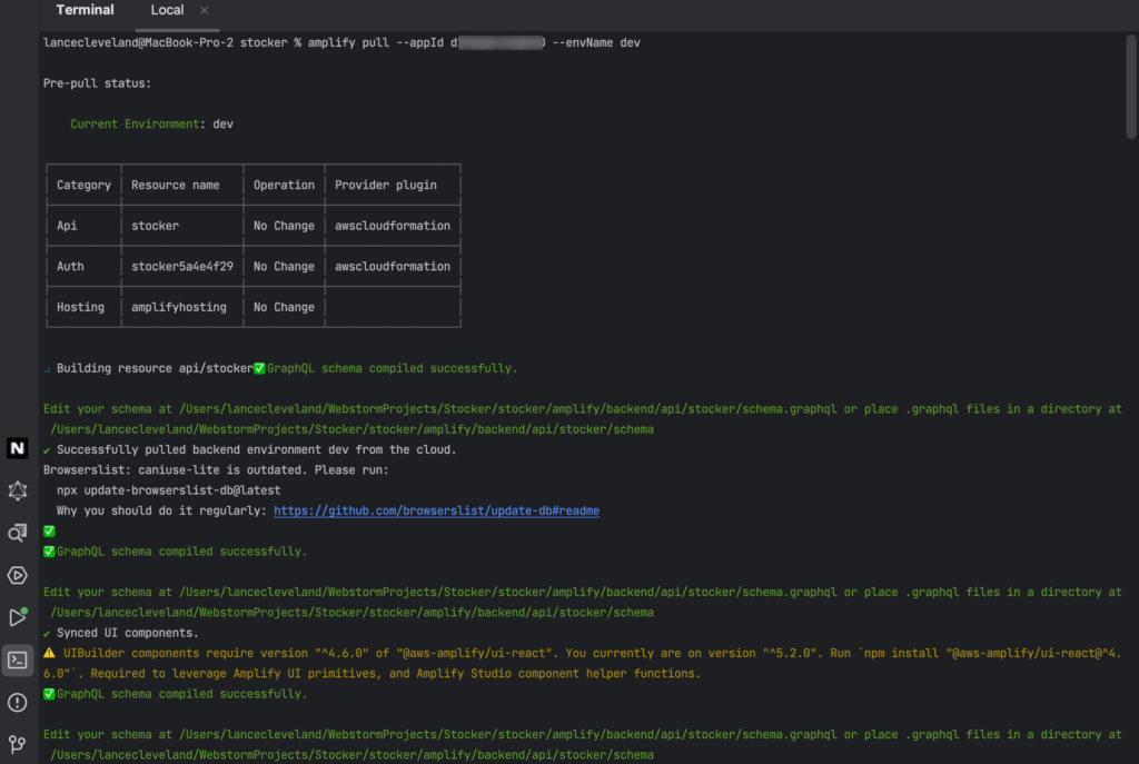 Once this has been copied to your local dev box you’ll likely want to update your git repo to save any changes. It often updates multiple files including src/models and/or amplify/backend files that define the data structs available to your app.