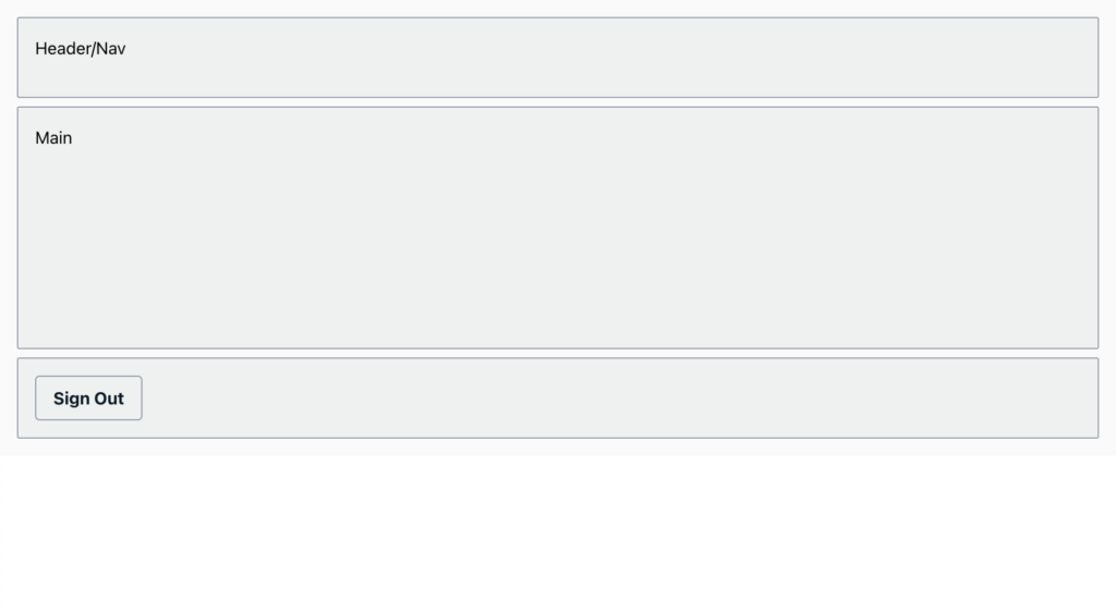 Now we can combine some of the default Amplify themes, in this case just to add some colors for visual clarity in the screen shots, with default Amplify React components. Let’s start with the Basic Amplify UI components to build a fairly standard Grid layout, here a simple header, main content area, and footer as for the first iteration I am not going to want a sidebar. A lot of content is mobile-centric these days, so sidebars are out for the moment.