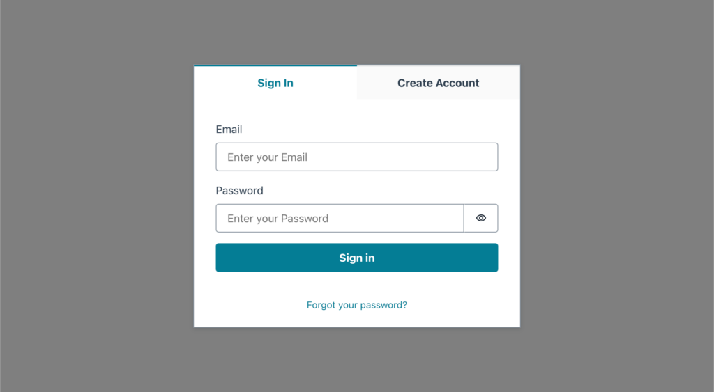 Why is the background color so much darker on our login/sign up screen? Because the default withAuthenticator wrapper will pull up the sign in / create account in a modal dialog box. Modal boxes are configured in Amplify Components to use a semi-transparent dark overlay. On a standard model this will darken anything on the page behind the modal giving it more of a “in the background/out of focus” appearance while putting emphasis on the modal content.