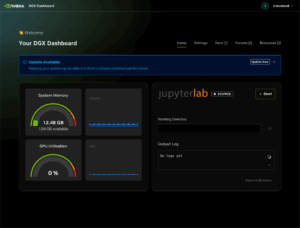 Now with Sync running we can access the built-in web-based dashboard provided by Digit-001, the DGX Spark. Of course we start with another available update. This is very much like the starting days of Internet development when every new device or app you installed was outdated between the time the item shipped and the time you installed it. That is what happens in the world of fast paced bleeding-edge development tools.