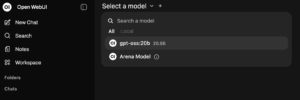 This will give you a “ChatGPT-Like” web interface. You need to start by selecting a model. Since this is a new box I followed the instructions and searched for a model named “gpt-oss:20b”. My understanding is these models are the trained AI models and my guess is this may be something like a token/probability data set but I’m not sure. One more thing to learn about AI as I’m not trained in that arena. What I do know is different models produce different results when you interact with the AI apps. For example, GPT-5 is a different LLM model for ChatGPT than GPT 4o. Anyone familiar with ChatGPT knows how differently those models behave. It impacts the ability and the “flavor” of the AI interactions.