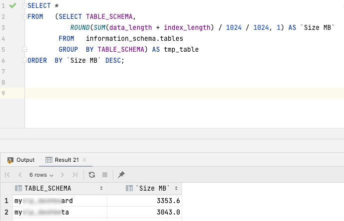 GROUP BY TABLE_SCHEMA) AS tmp_table